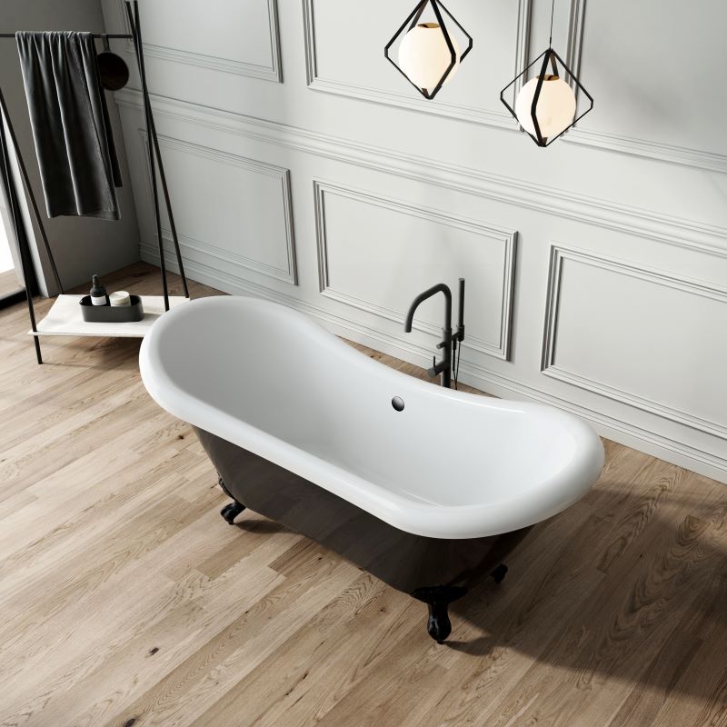 Baignoire ancienne en Résicryl® haute qualité de coloris noir brillant (3,8 mm), avec renforcement fibre de verre très résistant (2 à 4 mm).