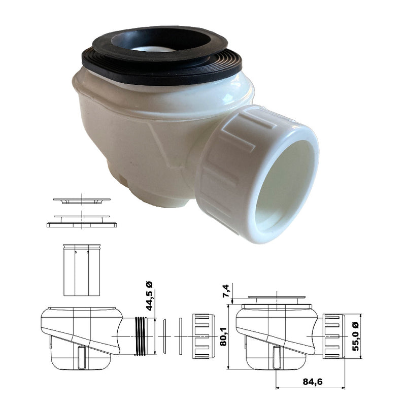 Bonde horizontale sans capot Ø90 DONA pour receveurs de douche