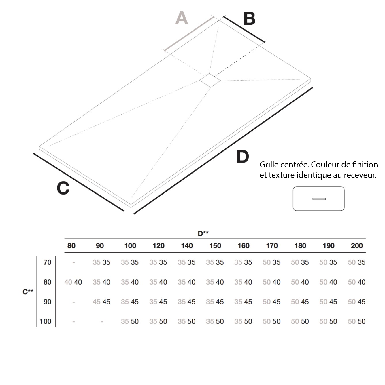 Dimensions - Receveur de douche extra plat FUSION en résine surface ardoisée - Le Monde du Bain