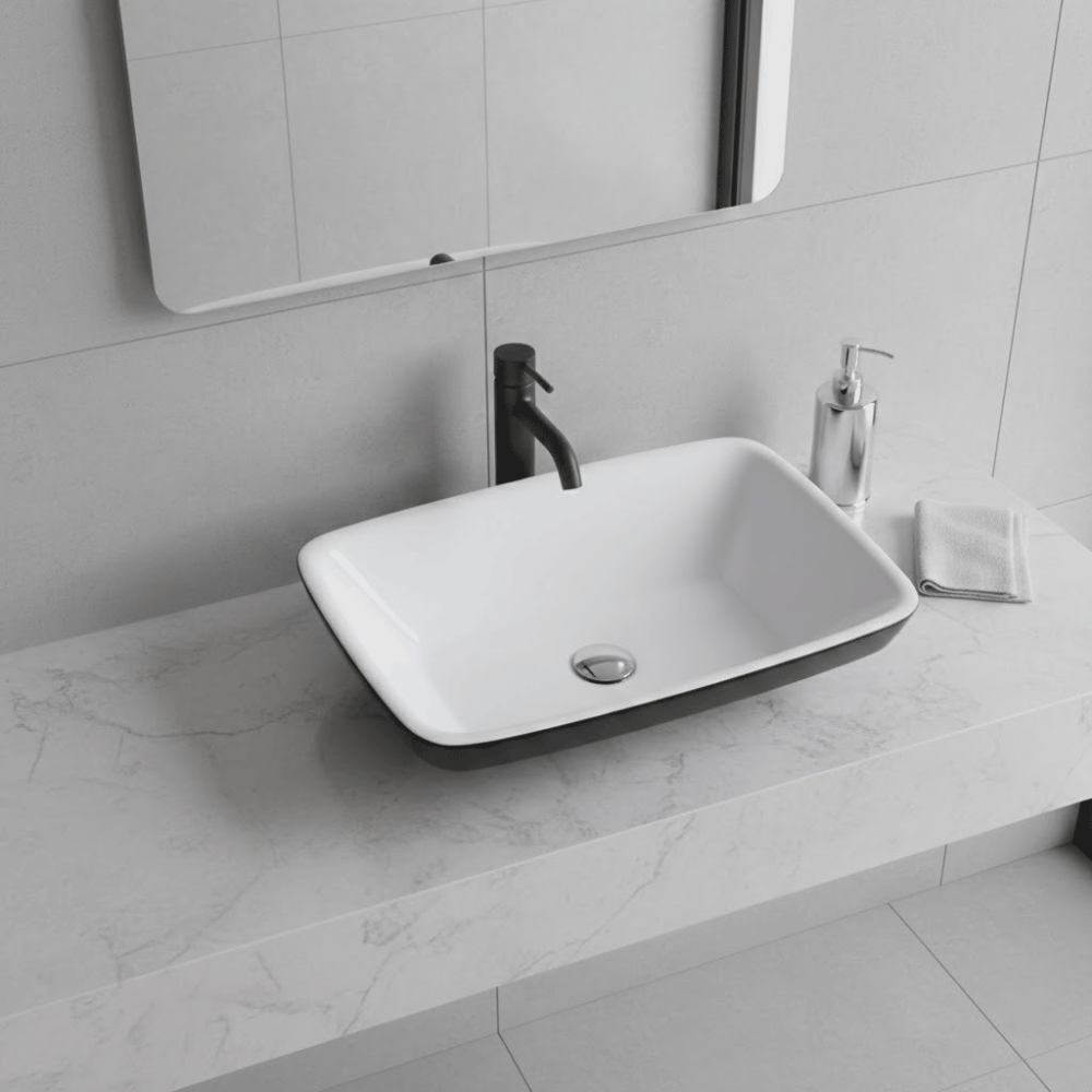 Vasque à poser noir et blanc SIENA en marbre de synthèse.