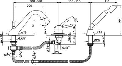 Ce robinet baignoire est livré avec une douchette à main de style ancien, un support de douchette, un flexible de douche double agrafage de longueur 175 cm.