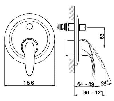 Robinet mitigeur bain/douche mural encastré de style simple.