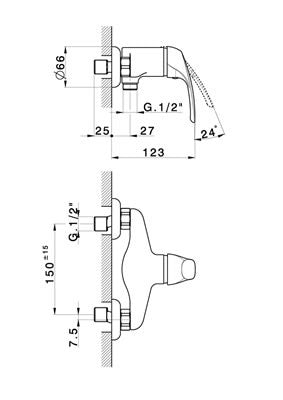 Robinet mitigeur douche mural de style simple.