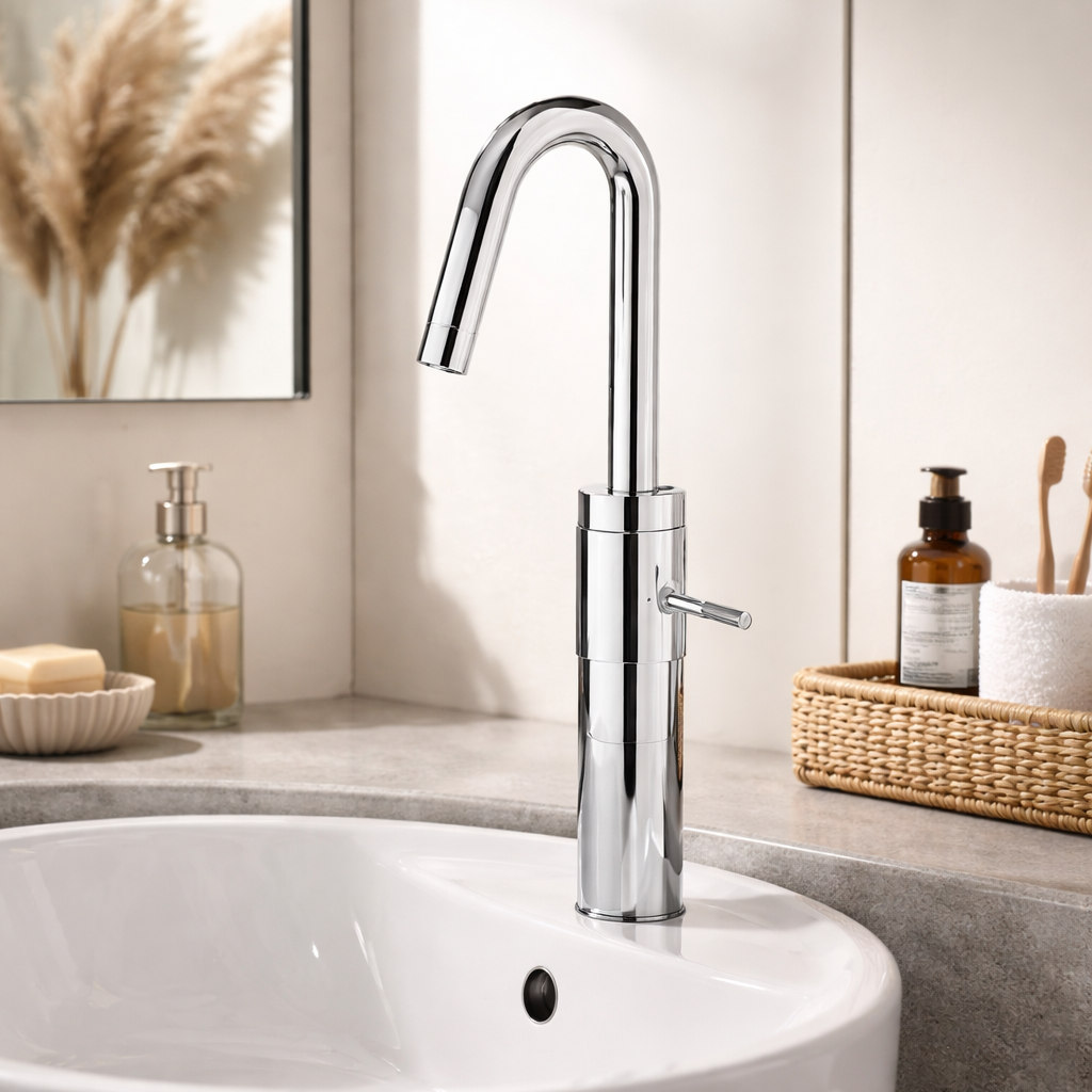 Robinet mitigeur lavabo de style design avec vidage.