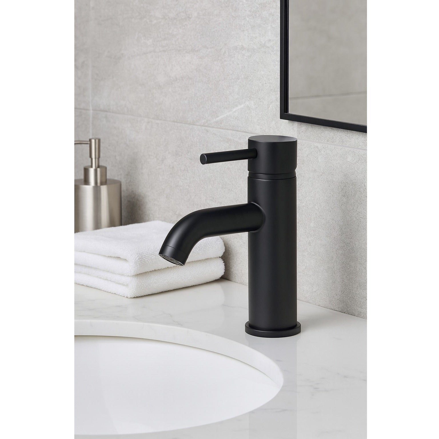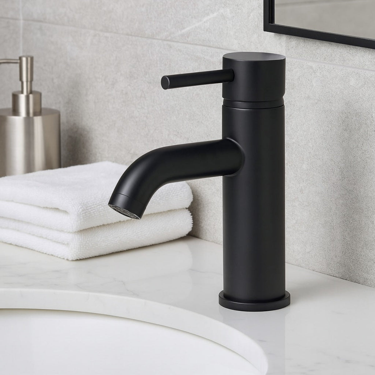 Robinet mitigeur lavabo de style moderne, pour salle de bain design, finition noir mat.