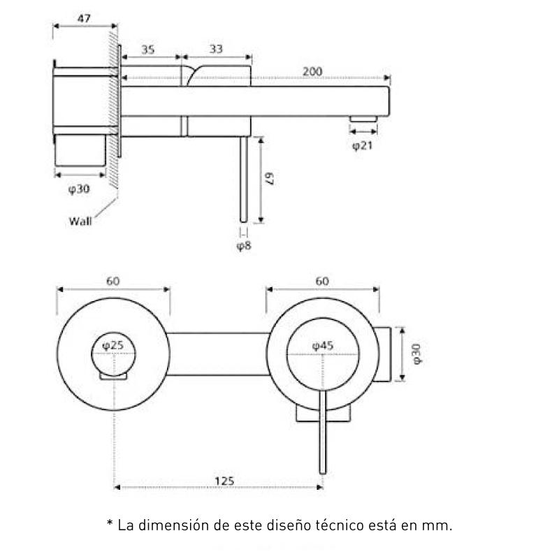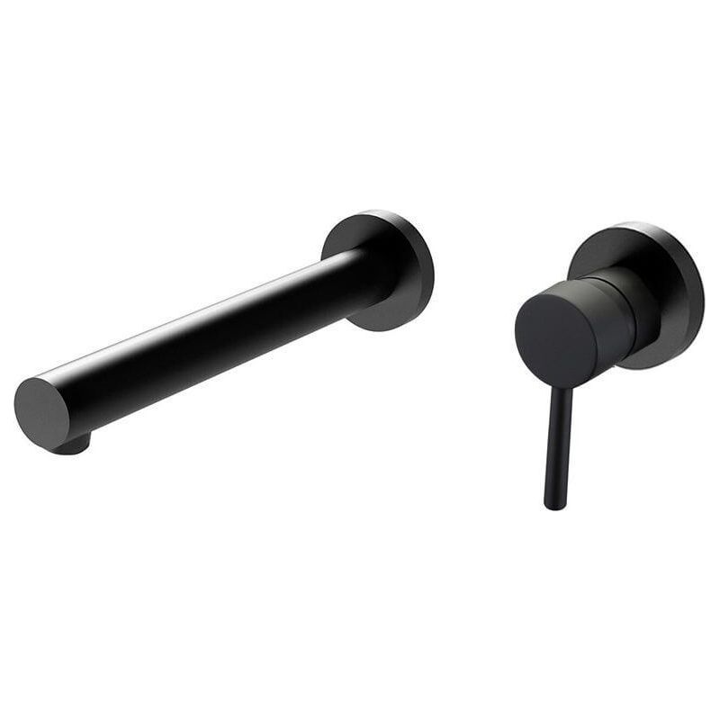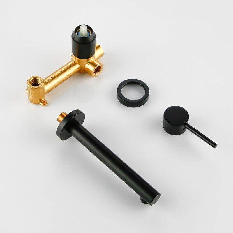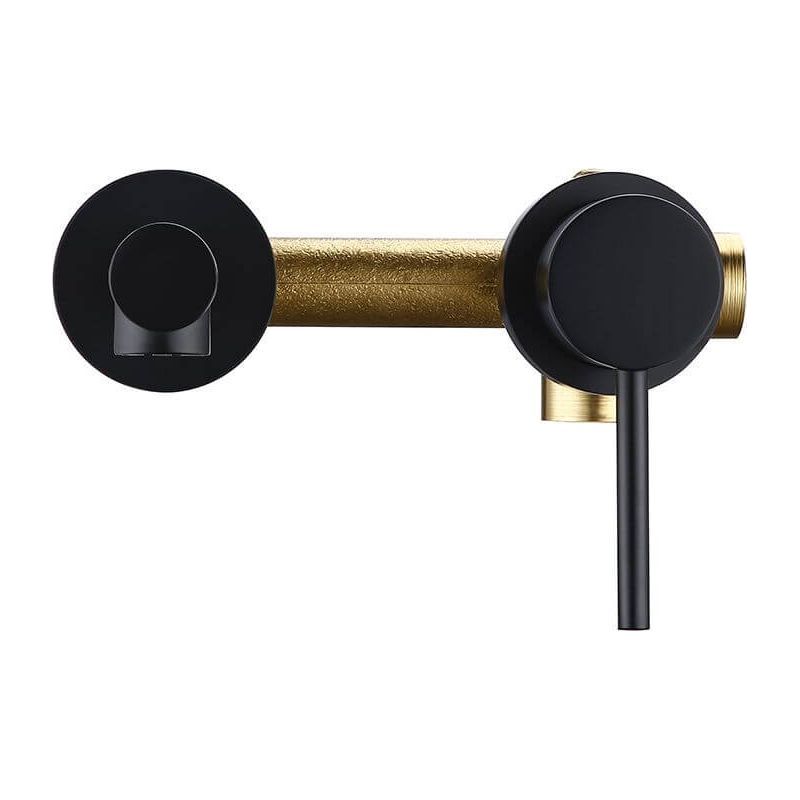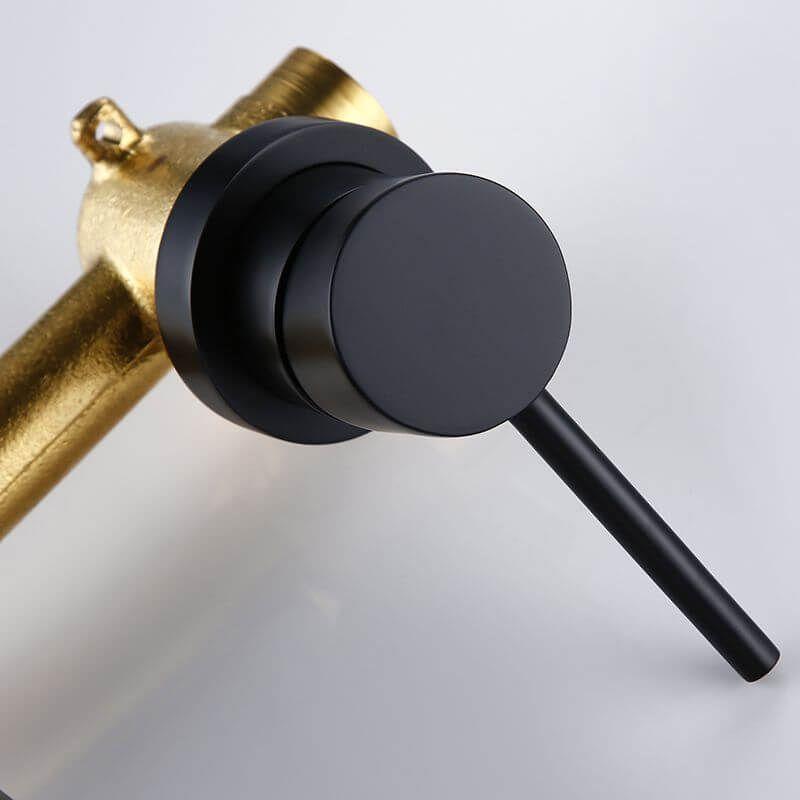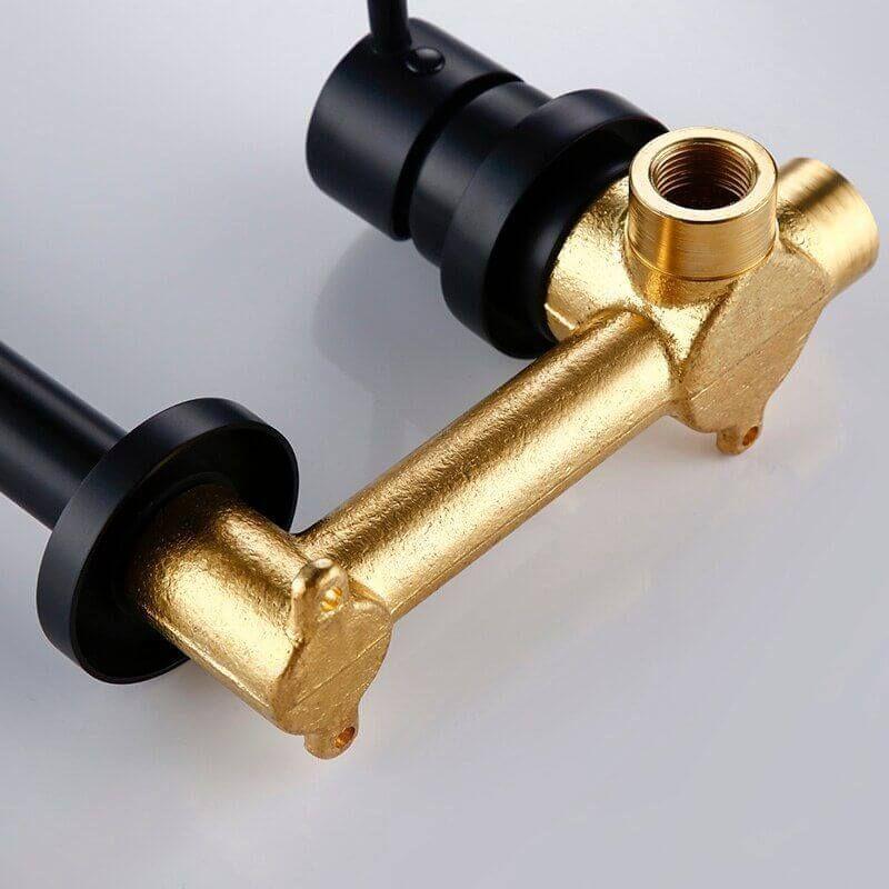 Robinet mitigeur mural à encastrer 2 trous finition noir mat, de style design minimaliste.