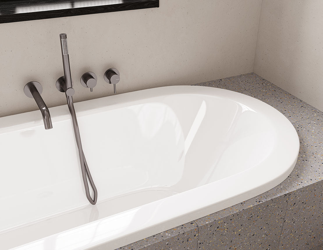 Baignoire disponible avec tablier pour une installation en îlot ou sans tablier pour un encastrement.