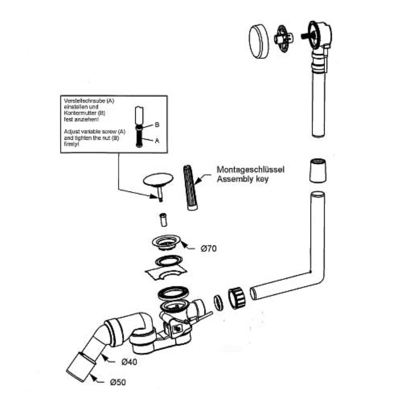 Kit bonde et trop-plein de baignoire STUROTEC avec bouchon