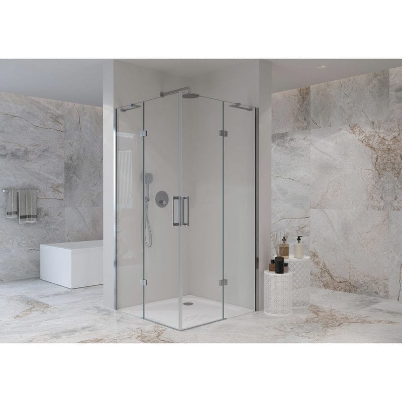 La paroi de douche accès en angle STUROTEC 5050 avec deux portes pivotantes et un élément fixe (90 x 90 x 200 cm) avec revêtement nano offre une solution durable et facile d’entretien pour votre douche. Avec son design moderne et sa fabrication robuste, il garantit un nettoyage aisé et une utilisation longue durée.
