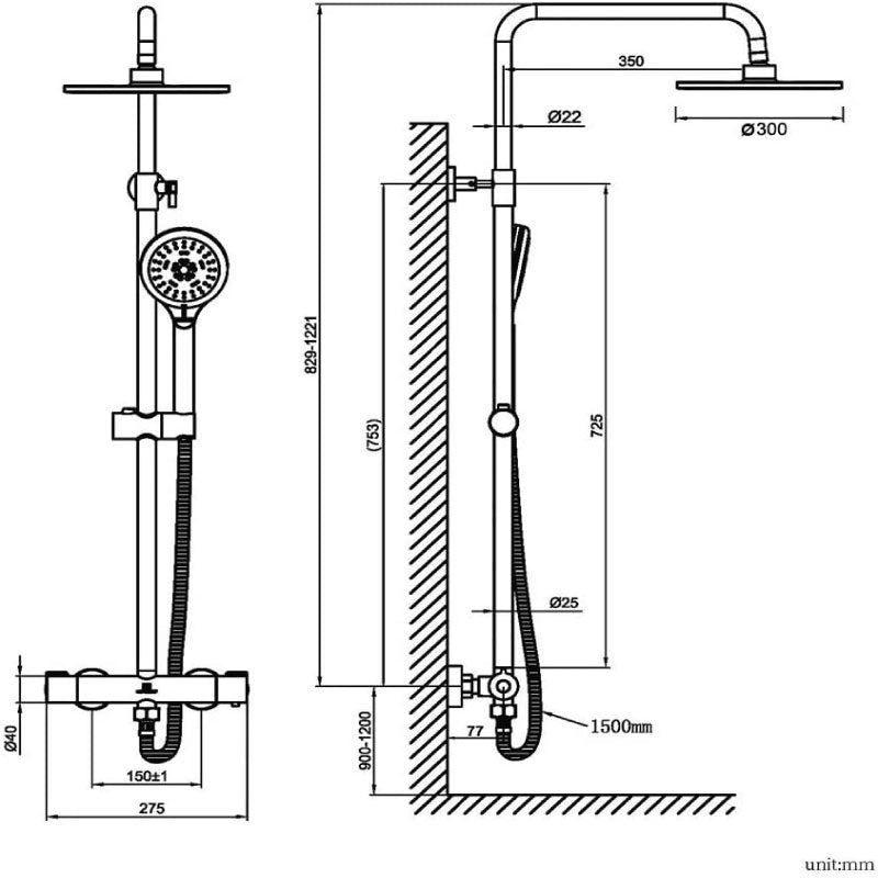 - Colonne de douche en acier inoxydable