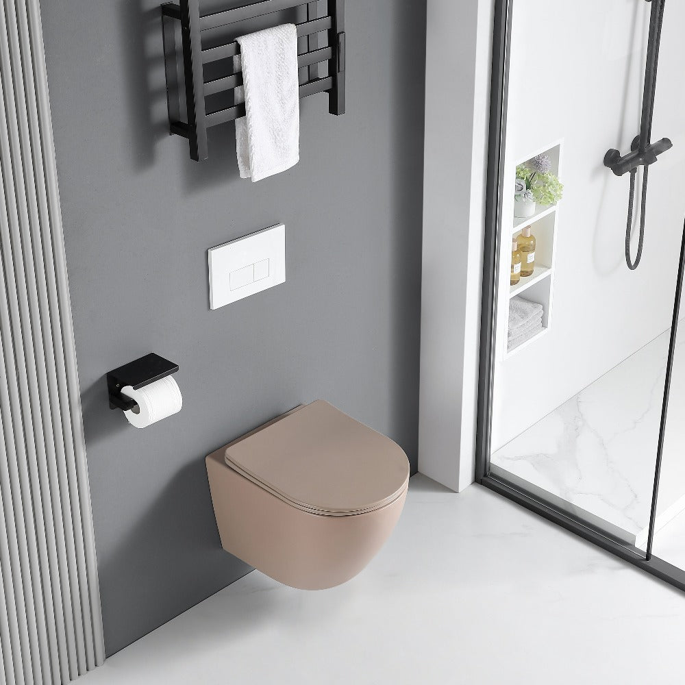 Cuvette de type WC à suspendre au design minimaliste, moderne et élégant, de coloris beige mat.