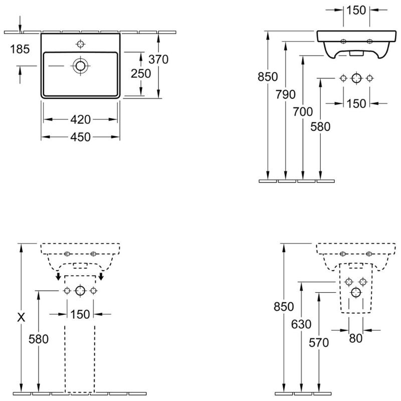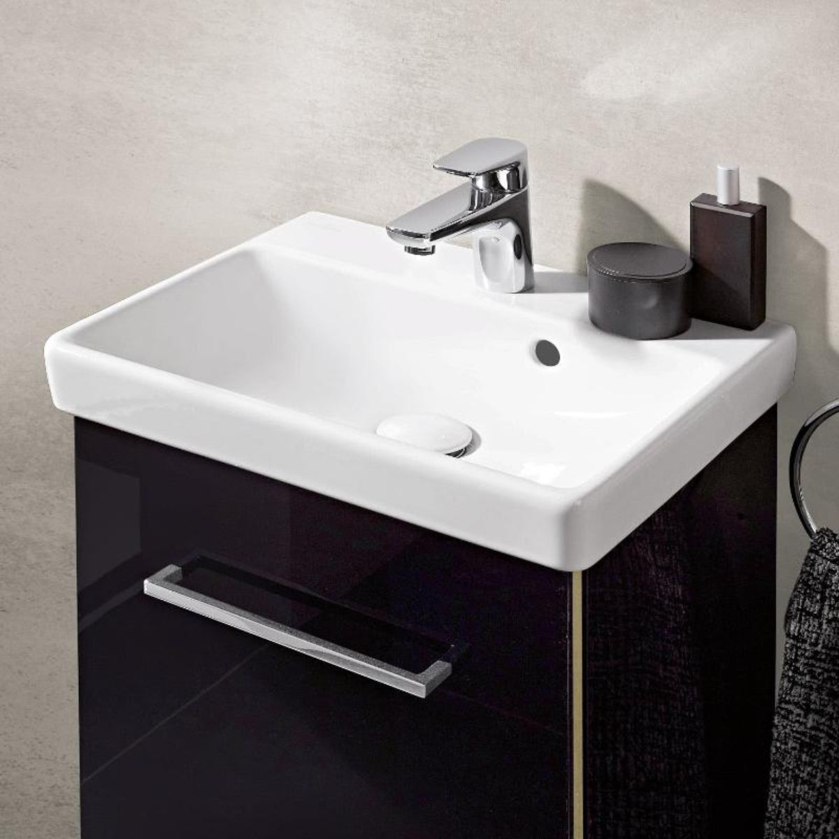Lave-mains rectangulaire de la collection Avento de Villeroy & Boch, blanche au design intemporel.