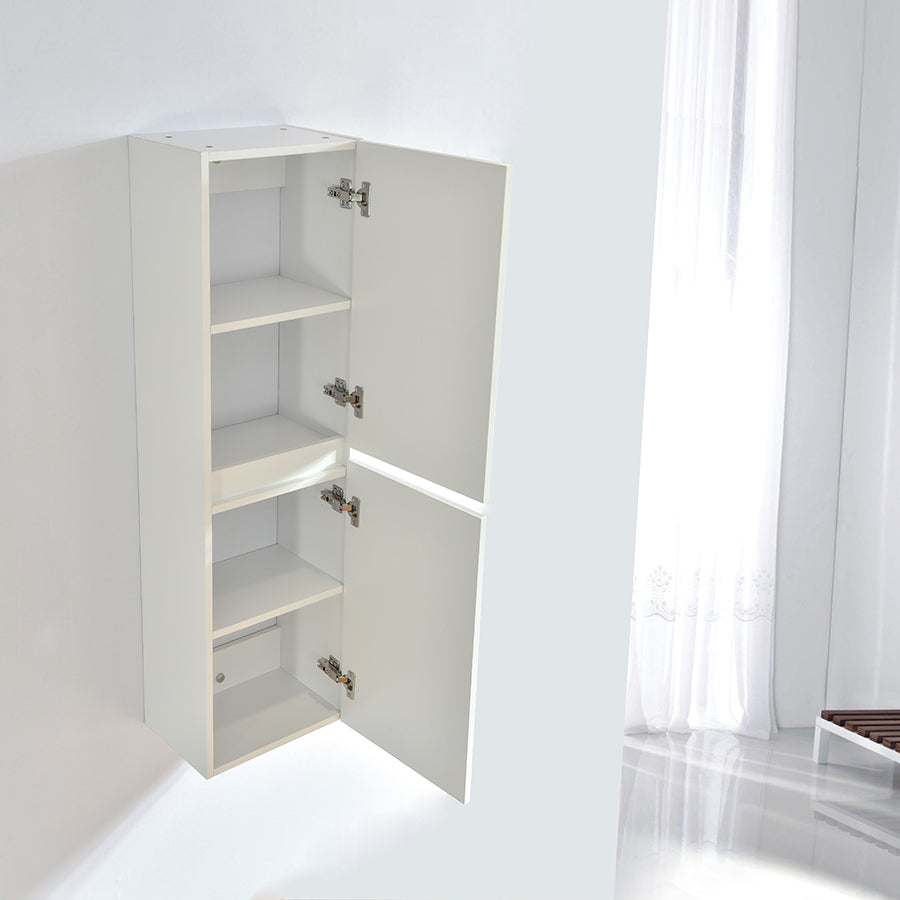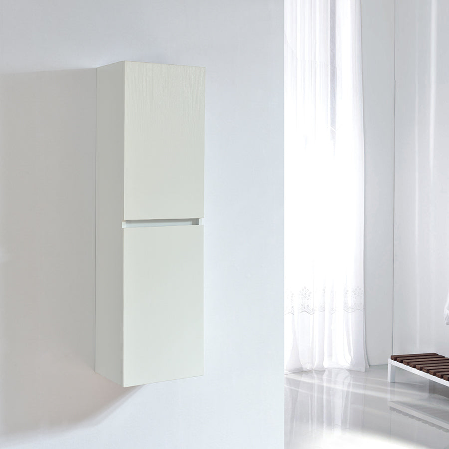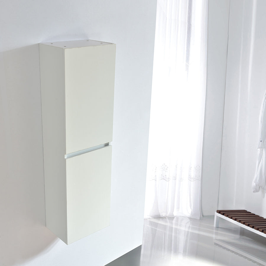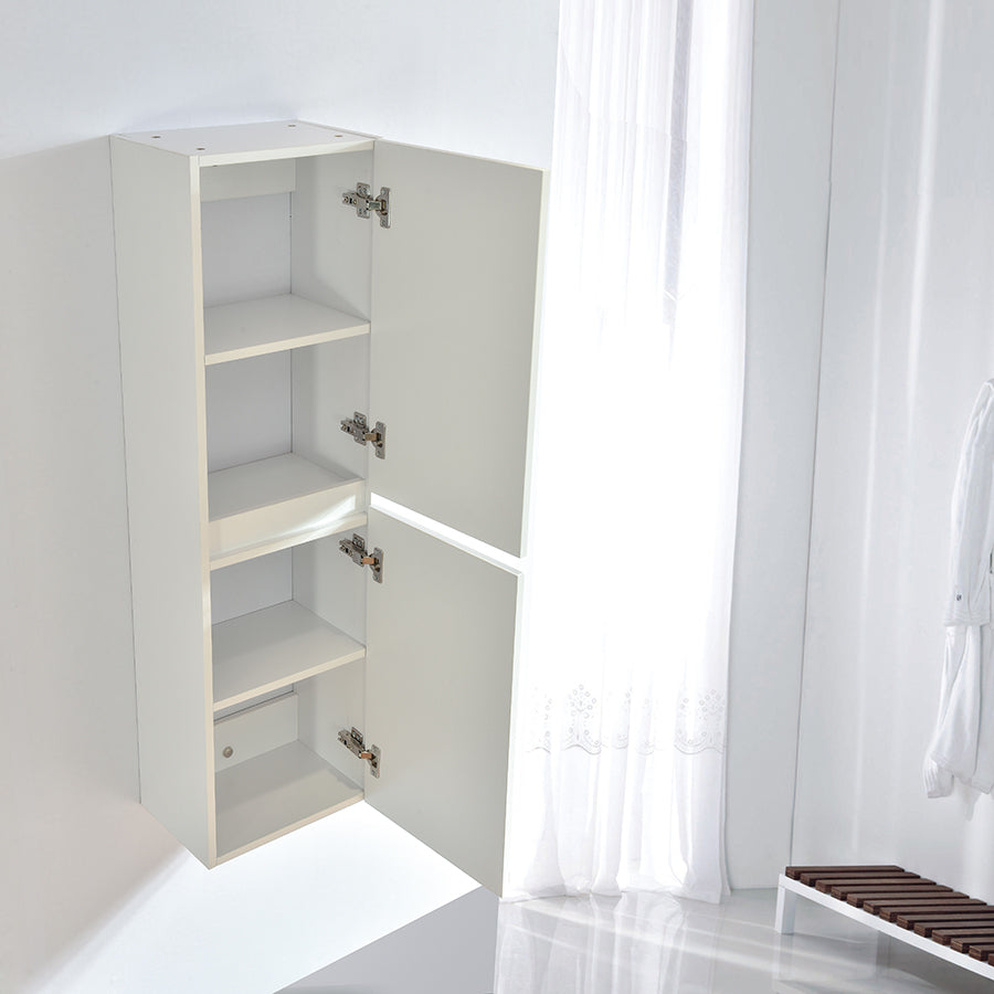 Cette armoire-colonne suspendue de grande dimension offre quatre espaces intérieurs, grâce à deux grandes portes et quatre étagères.