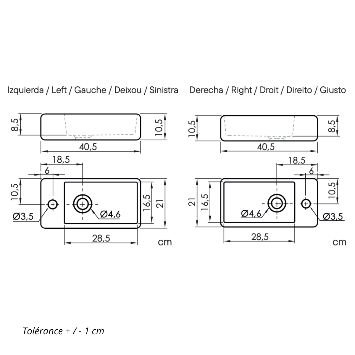 - Tolérance sur les dimensions : + ou - 1 cm.