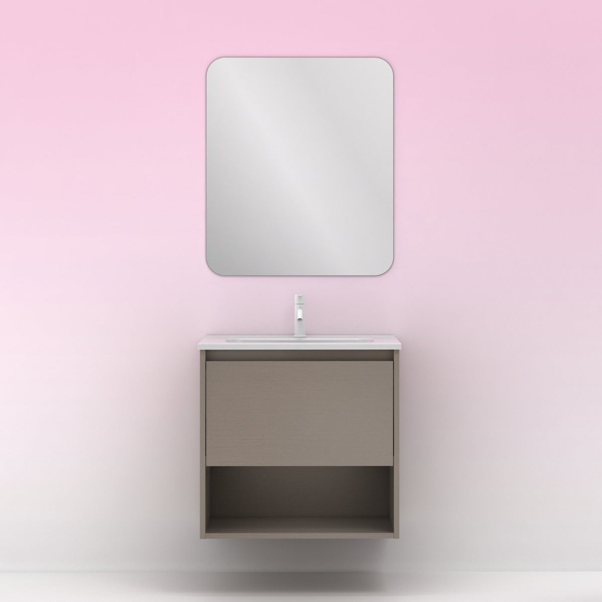 - Miroir SORA rectangulaire au design minimaliste, pour le meuble de largeur 60 cm. Il se distingue par son élégance, des bords arrondis, un verre poli et un emplacement pour un transformateur creux. Dimensions : largeur 60 cm x hauteur 70 cm x profondeur 2 cm.