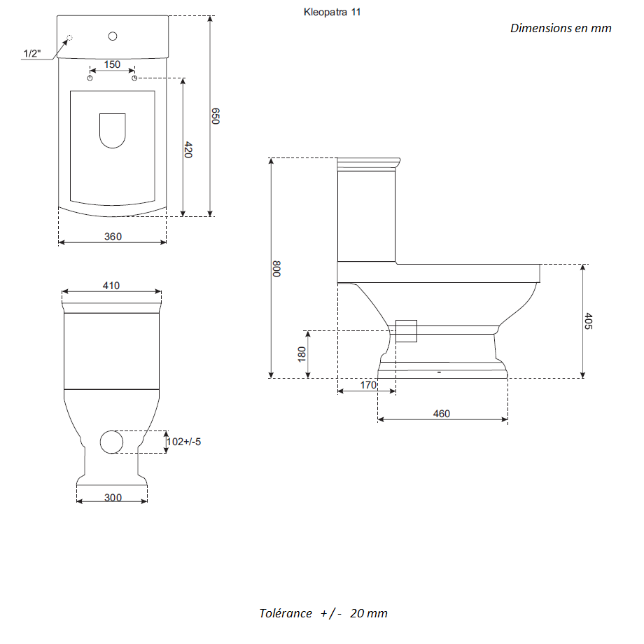 - Conditionnement : deux cartons, un pour le réservoir et un pour la cuvette