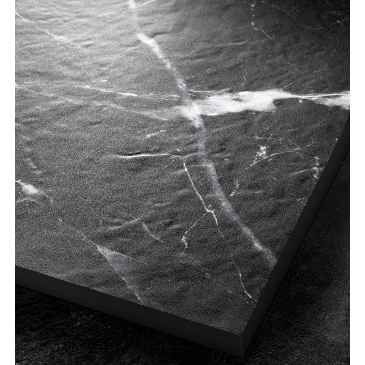 Élégant et contemporain, le panneau mural en Solid Surface imitation marbre noir apporte caractère et profondeur à votre salle de bain. Recoupable et unique, il transforme votre espace avec le charme minéral et la sobriété du marbre noir.