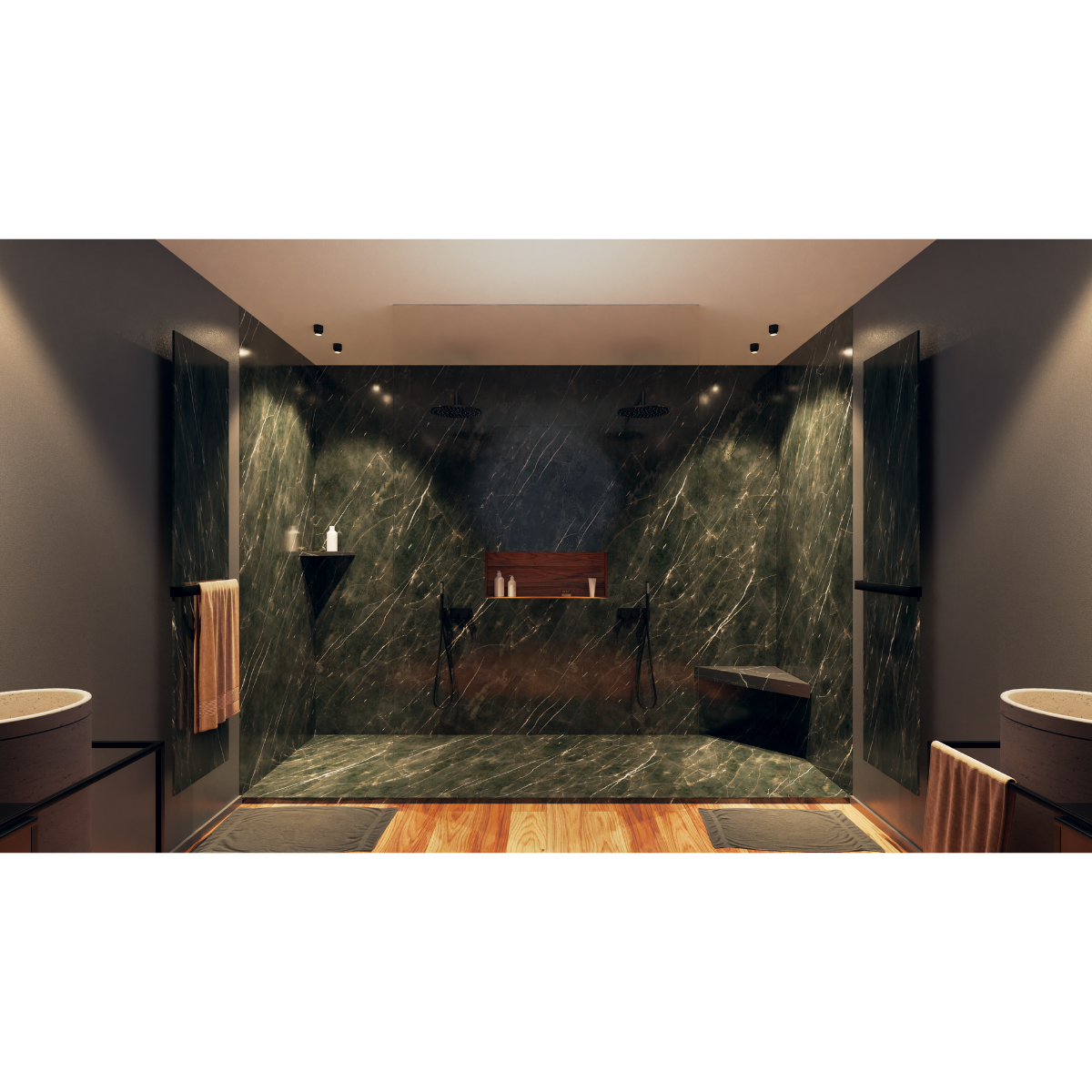 Ce panneau mural en Solid Surface imitation marbre, doté d’une natte d’étanchéité intégrée et d’un traitement antibactérien, offre une surface lisse, satinée et sans joint, à la fois facile à ajuster et rapide à poser, pour sublimer votre douche avec élégance et modernité.