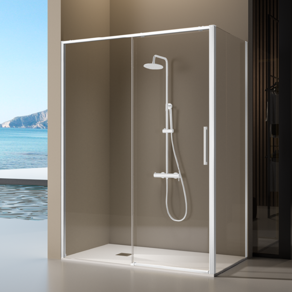 - La longueur totale de la paroi peut être modifiée de quelques centimètres en ajustant l'espace à l'intérieur du profil. Le réglage se fait lors de l'installation et permet d'absorber les petites variations de distances que votre installation peut avoir une fois le receveur de douche installé.
