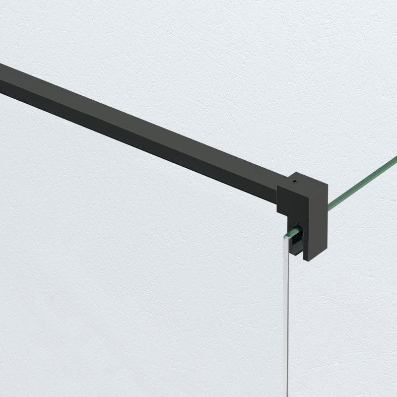 Paroi de douche fixe MANACOR pour douche à l'italienne en verre trempé, avec cadre et barre d'appui de finition noir mat.