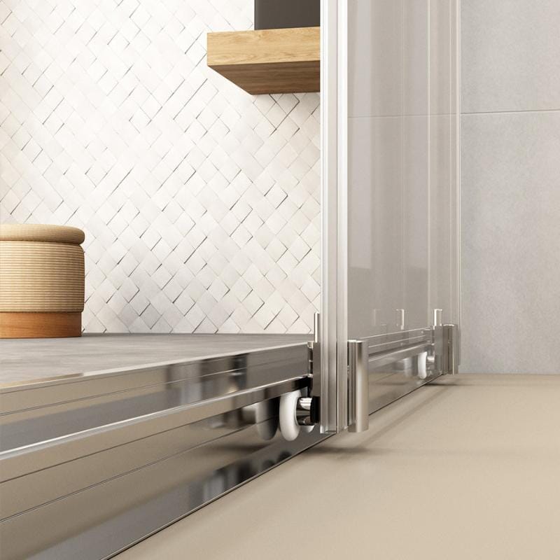 Panneau de douche fixe avec porte coulissante, modèle ZURICH, de longueur 100 cm à 176 cm. Finition du profil chromé.