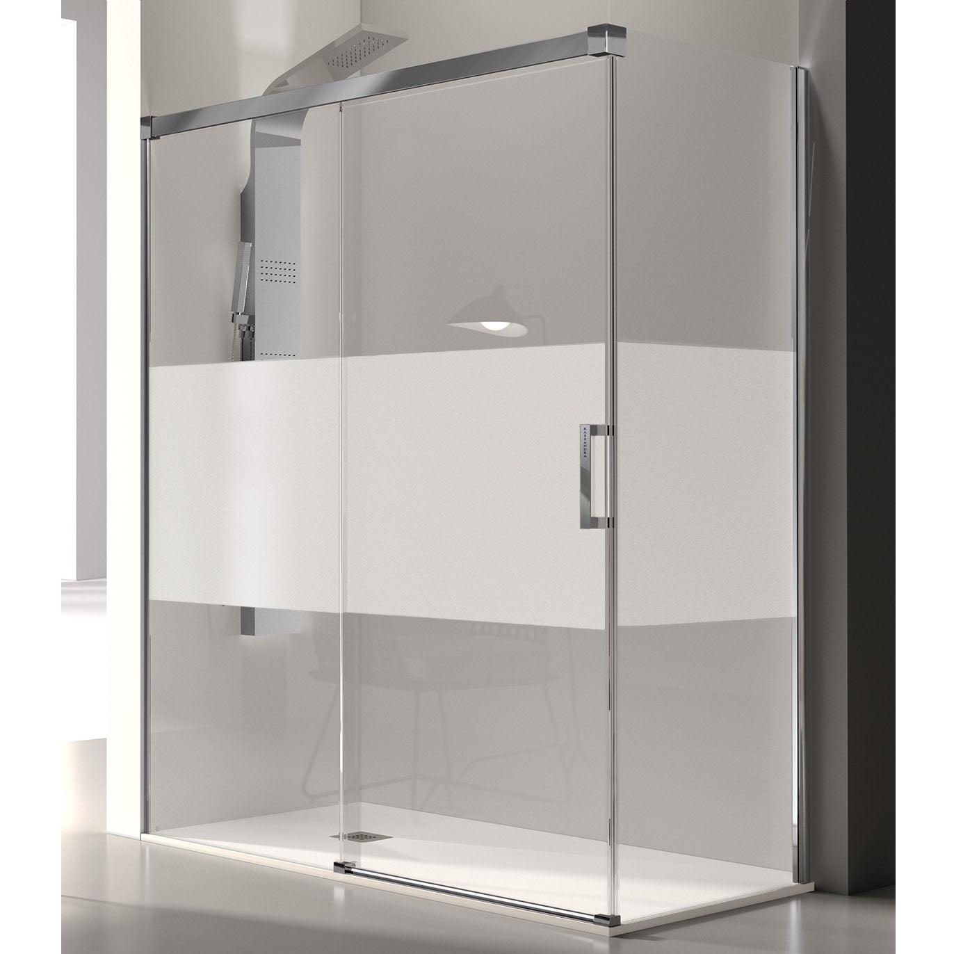 Paroi de douche fixe + Porte coulissante GLASÉ verre sérigraphié avec paroi latérale