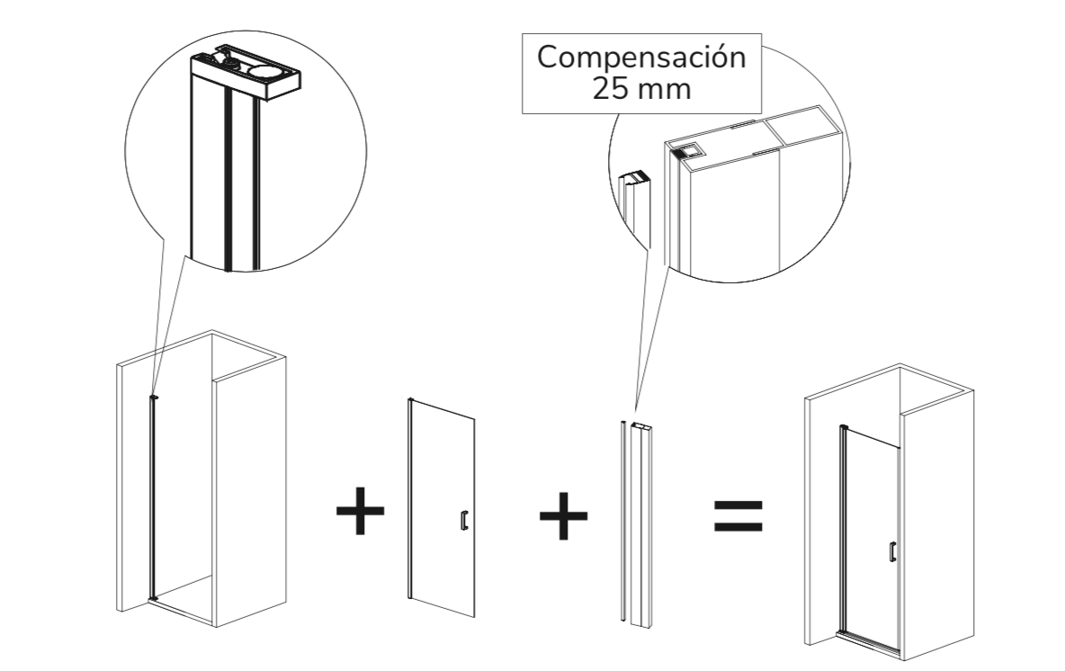 Note : La longueur totale de la paroi peut être modifiée de quelques centimètres en ajustant l'espace à l'intérieur du profil ou la traversée de la porte. Le réglage se fait lors de l'installation et permet d'absorber les petites variations de distances que votre installation peut avoir une fois le receveur de douche installé. Nous indiquons dans ce tableau la dimension disponible pour chaque modèle :