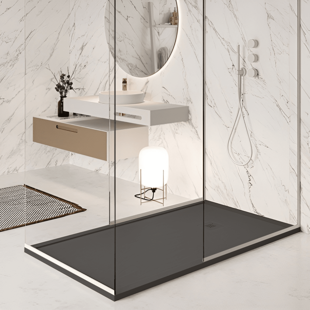 Les receveurs de douche texturés en résine sont idéaux pour les salles de bains ultramodernes et constituent l’alternative parfaite aux receveurs en acrylique.