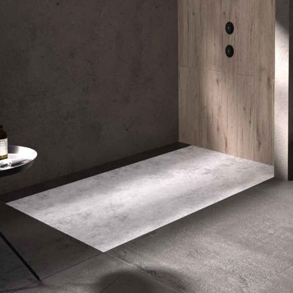 Receveur de douche extra plat DEKOR en résine, ultra-résistant et ultra-durable, finition béton brut.