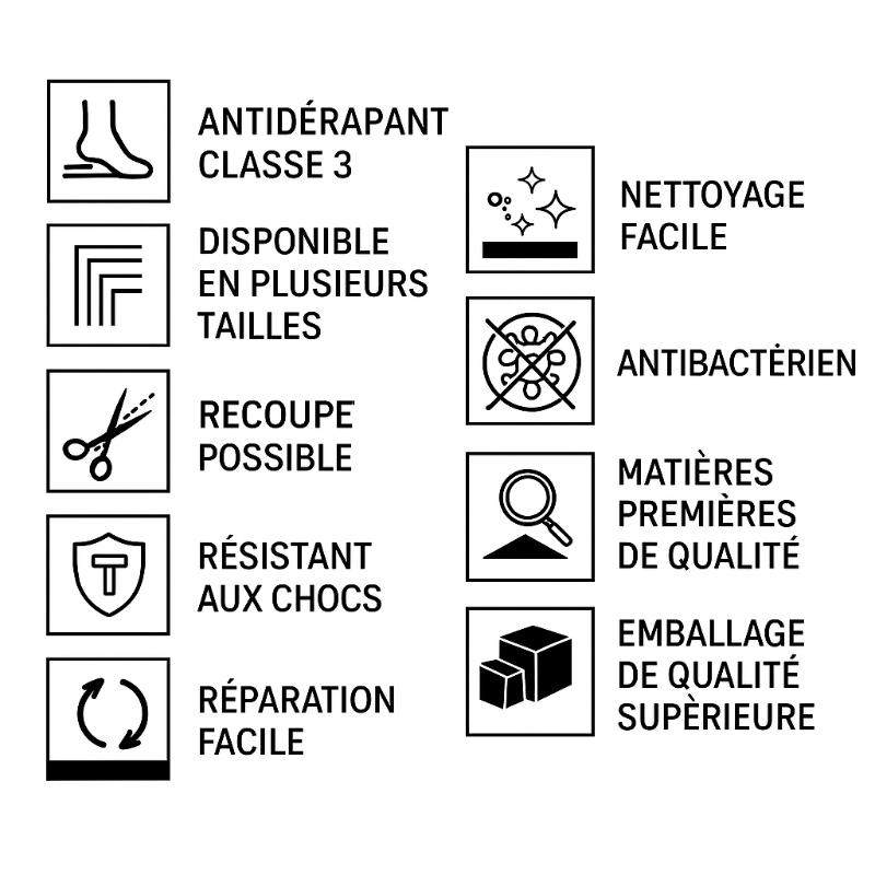 - Surface antidérapante classe 3 (R10), certifiée ENV12633