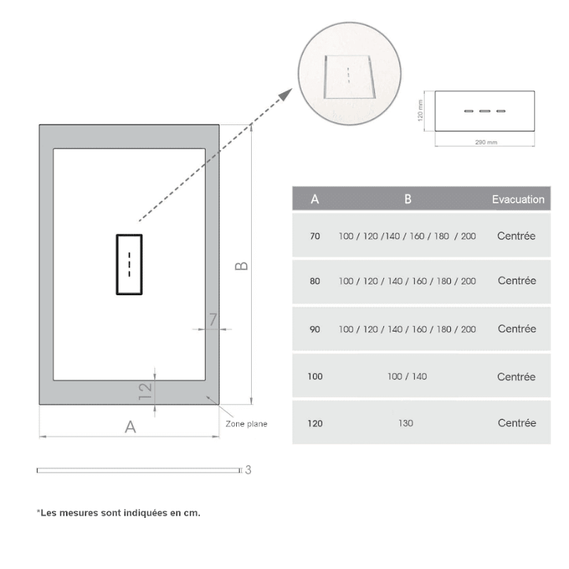 • Receveurs de douche sur mesure, disponibles dans les dimensions de votre choix