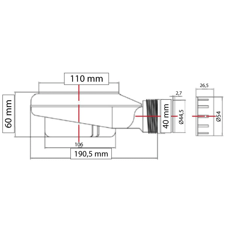 Bonde horizontale sans capot Ø90 DONA pour receveurs de douche