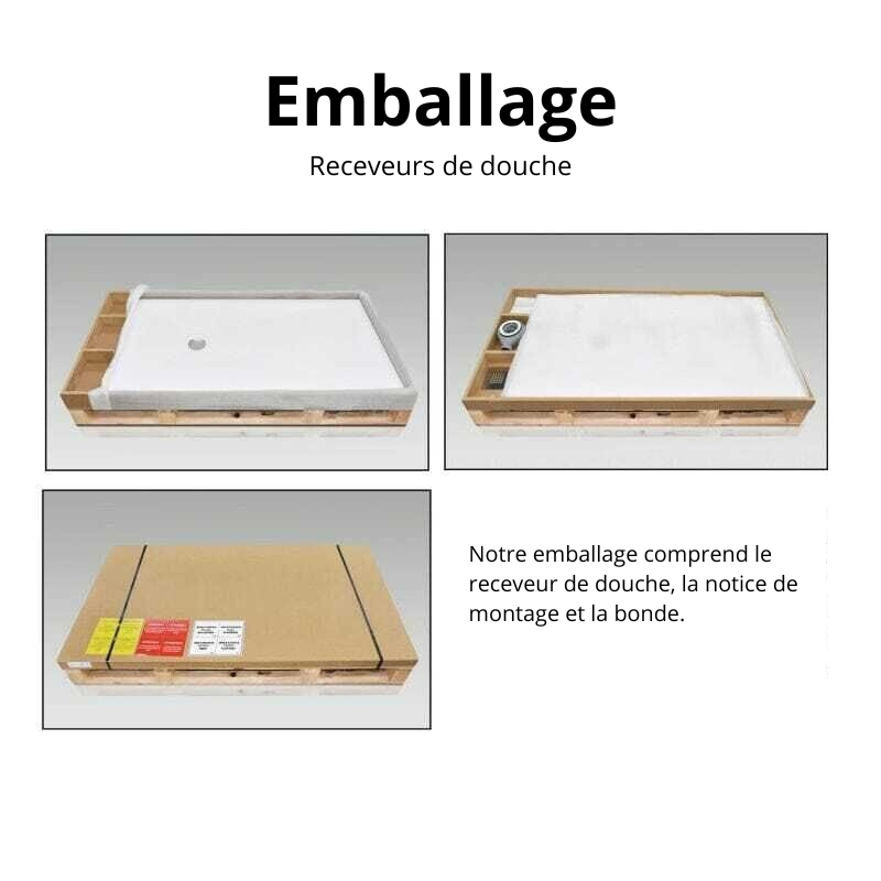 Avant l’installation : Il est recommandé de stocker le receveur de douche à l’horizontale et de niveau avec le sol. Assurez-vous que la surface est en parfait état. Si vous constatez des anomalies ou des défauts, n'effectuez pas l'installation et contactez-nous.