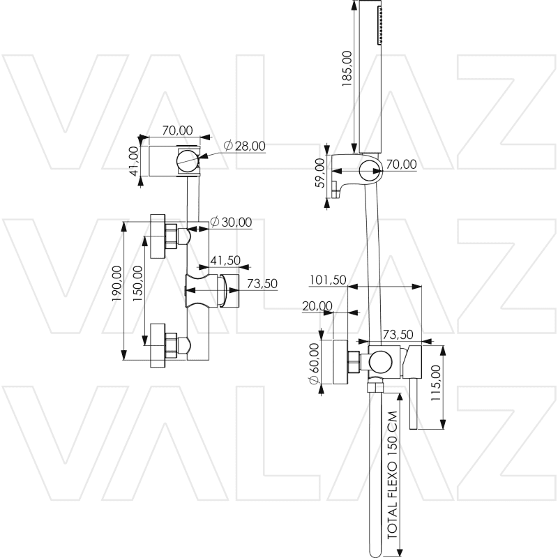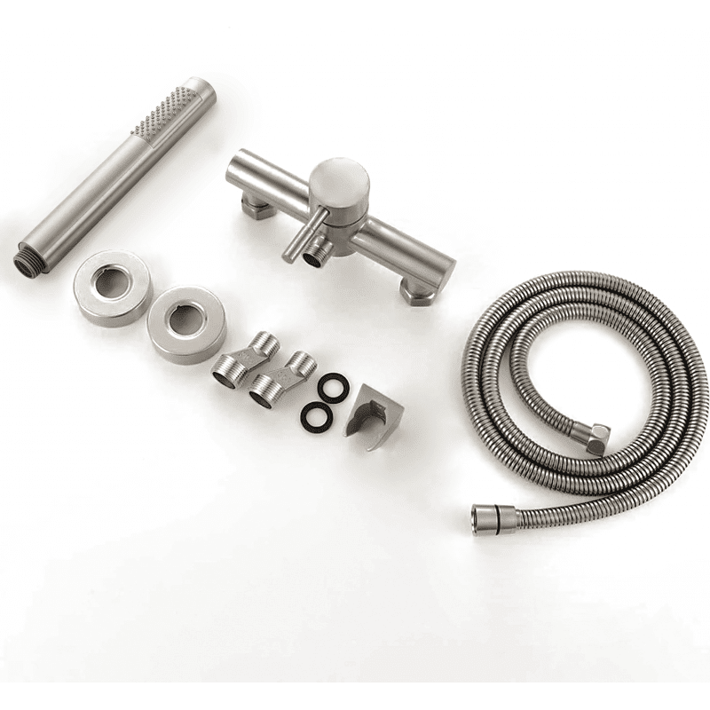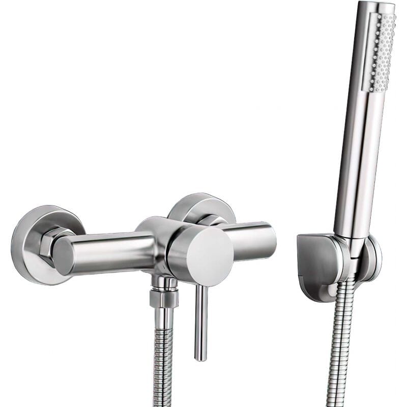 Fabrication de haute qualité. Robinet en laiton massif avec finition chromée. Douche en acier inoxydable. Douchette à main en ABS avec finition chromée. Tête de douche en laiton massif avec finition chromée. Flexible de douche premium en PVC.