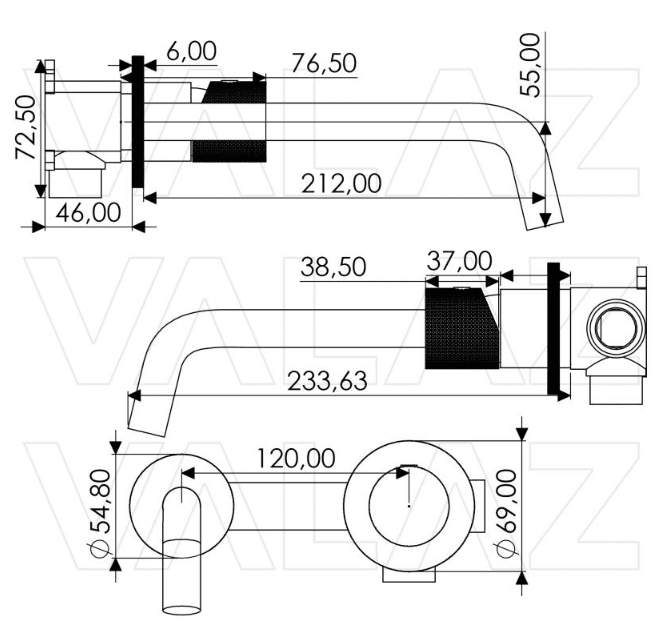 • Longueur du robinet : 212 mm
