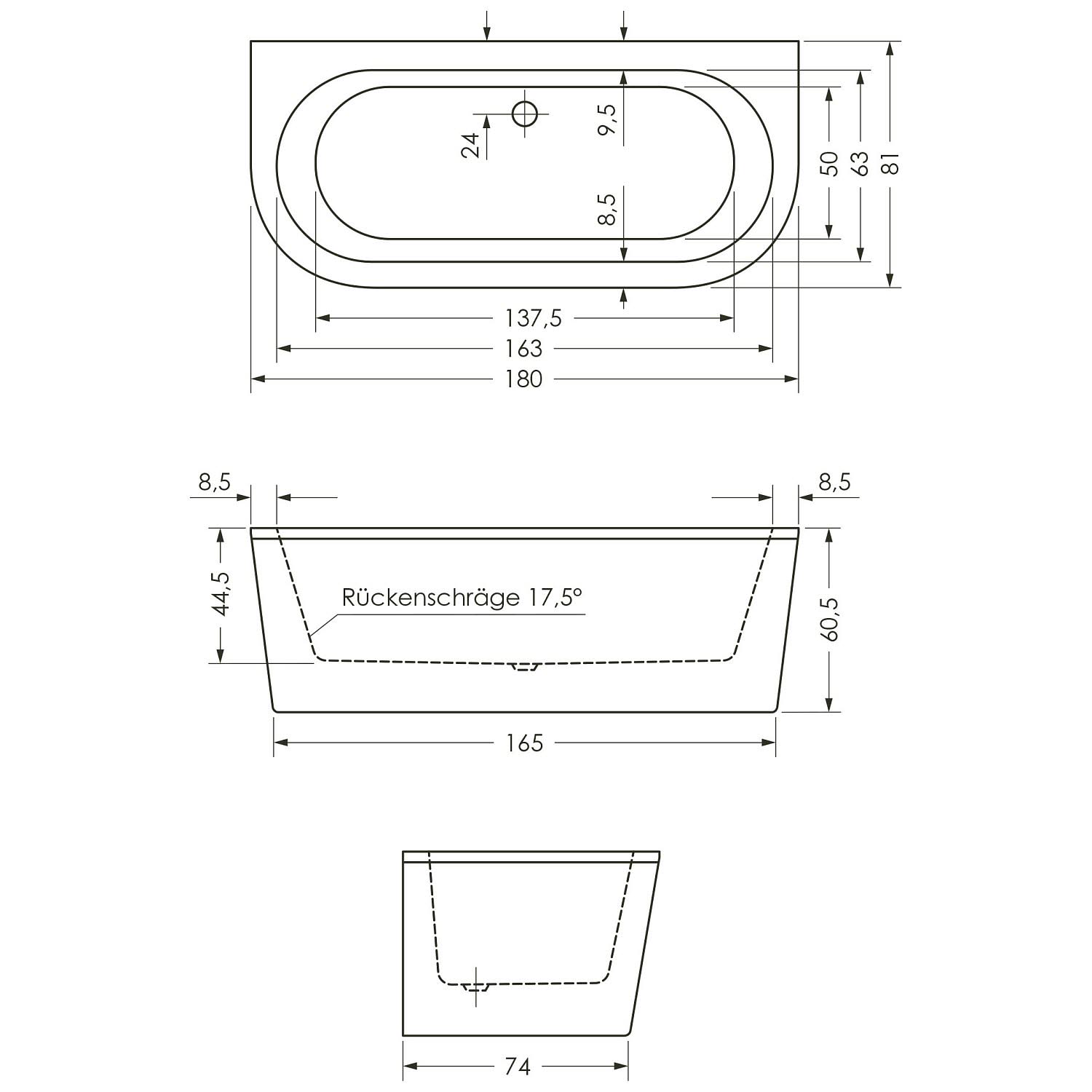Baignoire pré-encastrée STEINKAMP LIFE 180 x 80 cm avec bonde et robinetterie MT5.