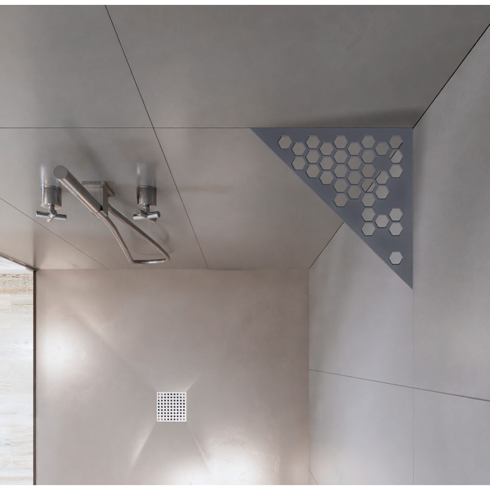 Grille inox PIATTO pour receveurs de douche en SoliCast©, motif quadrillage - Le Monde du Bain