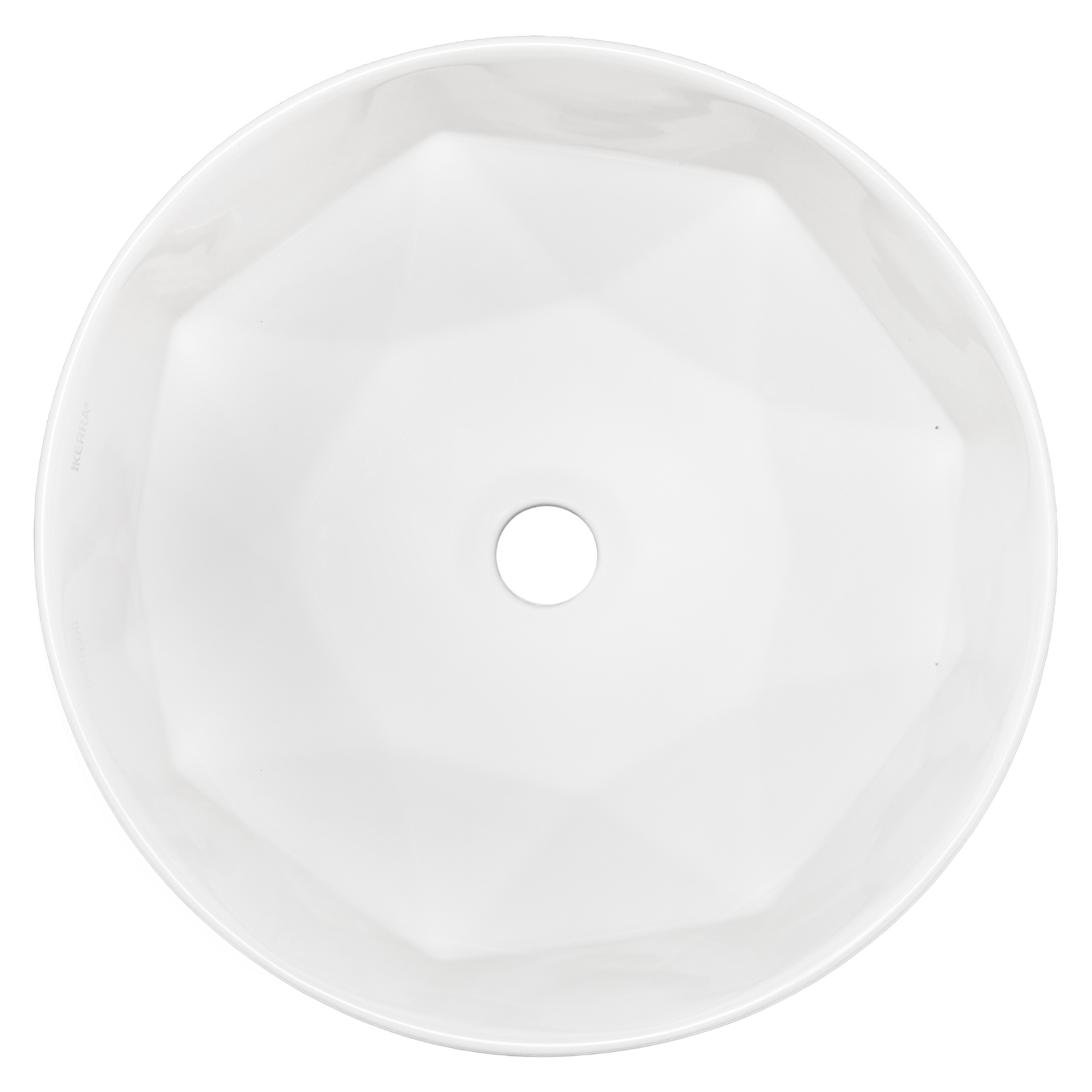 Vasque à poser de forme ronde en céramique, finition blanc brillant, design intérieur unique en forme de diamant. Cette forme facettée reflète élégance et modernité, apportant une touche précieuse à votre salle de bain.