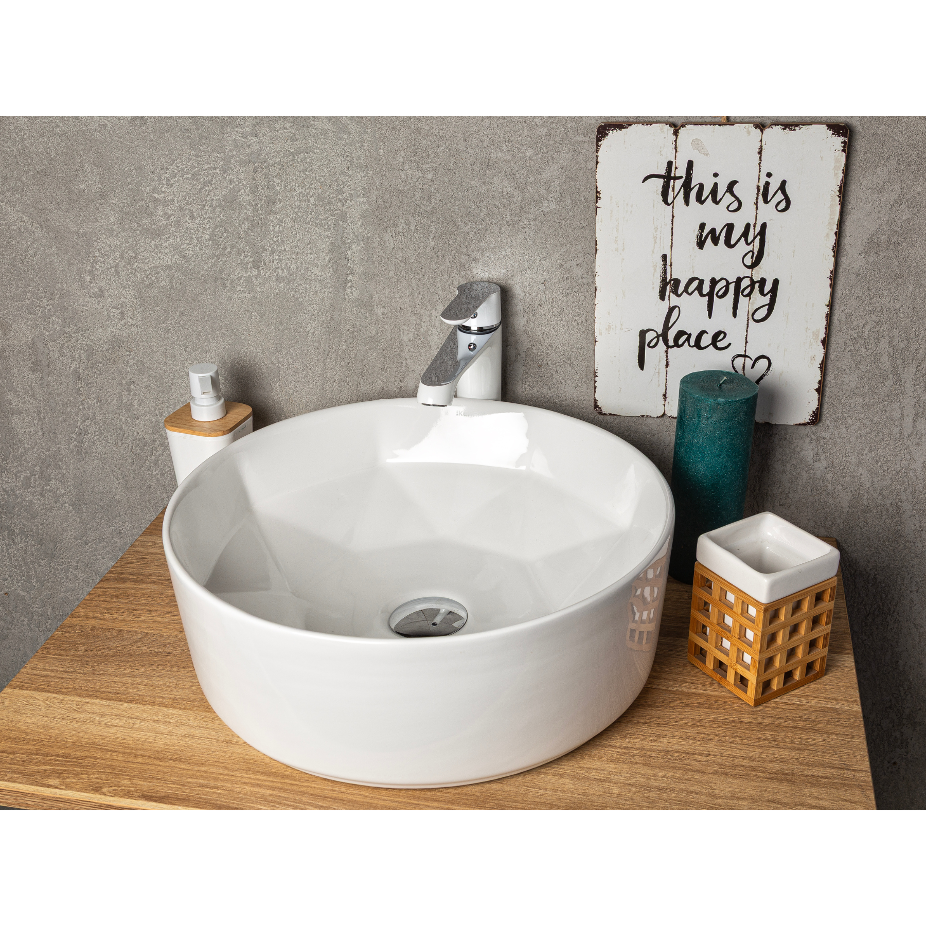 Vasque à poser ronde en céramique ELYNA design intérieur en forme de diamant