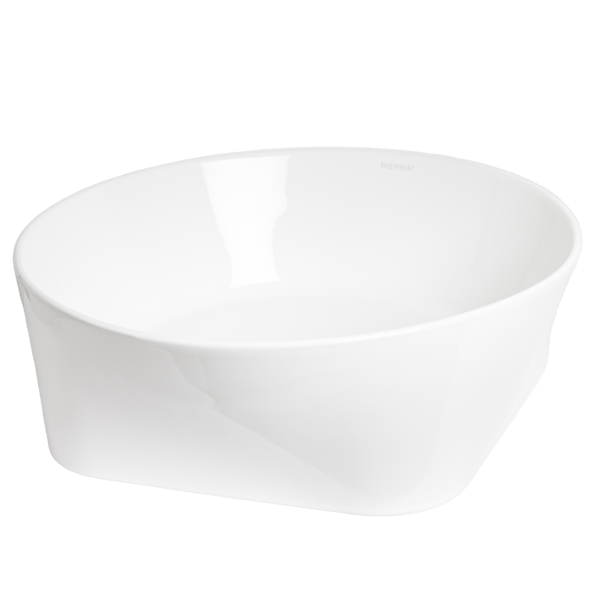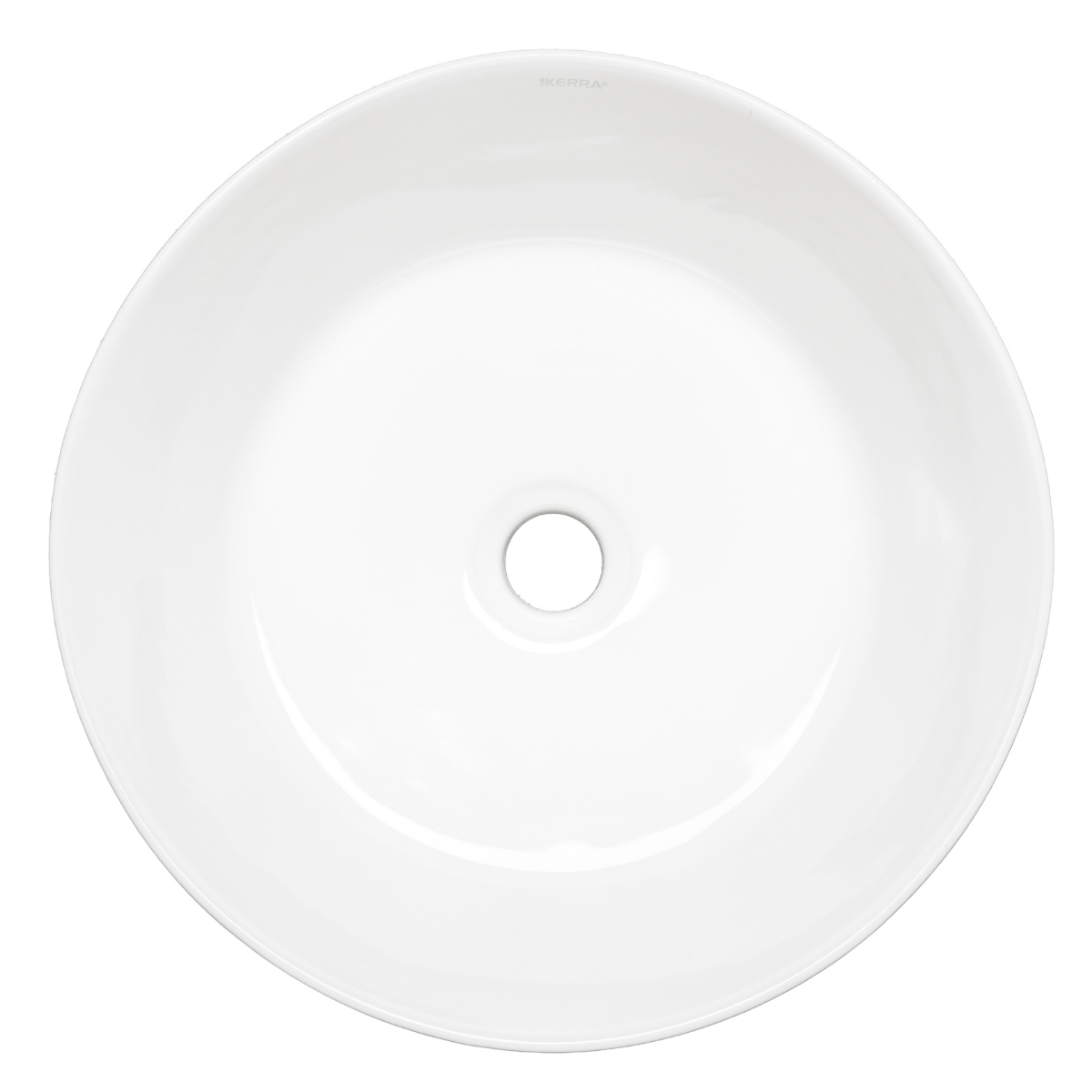Vasque à poser en céramique de forme ronde légèrement adoucie (ovale arrondie), au design minimaliste et élégant, finition blanc brillant. Ses lignes fluides et son rebord fin apportent une touche de modernité et de légèreté, idéale pour une salle de bain contemporaine.